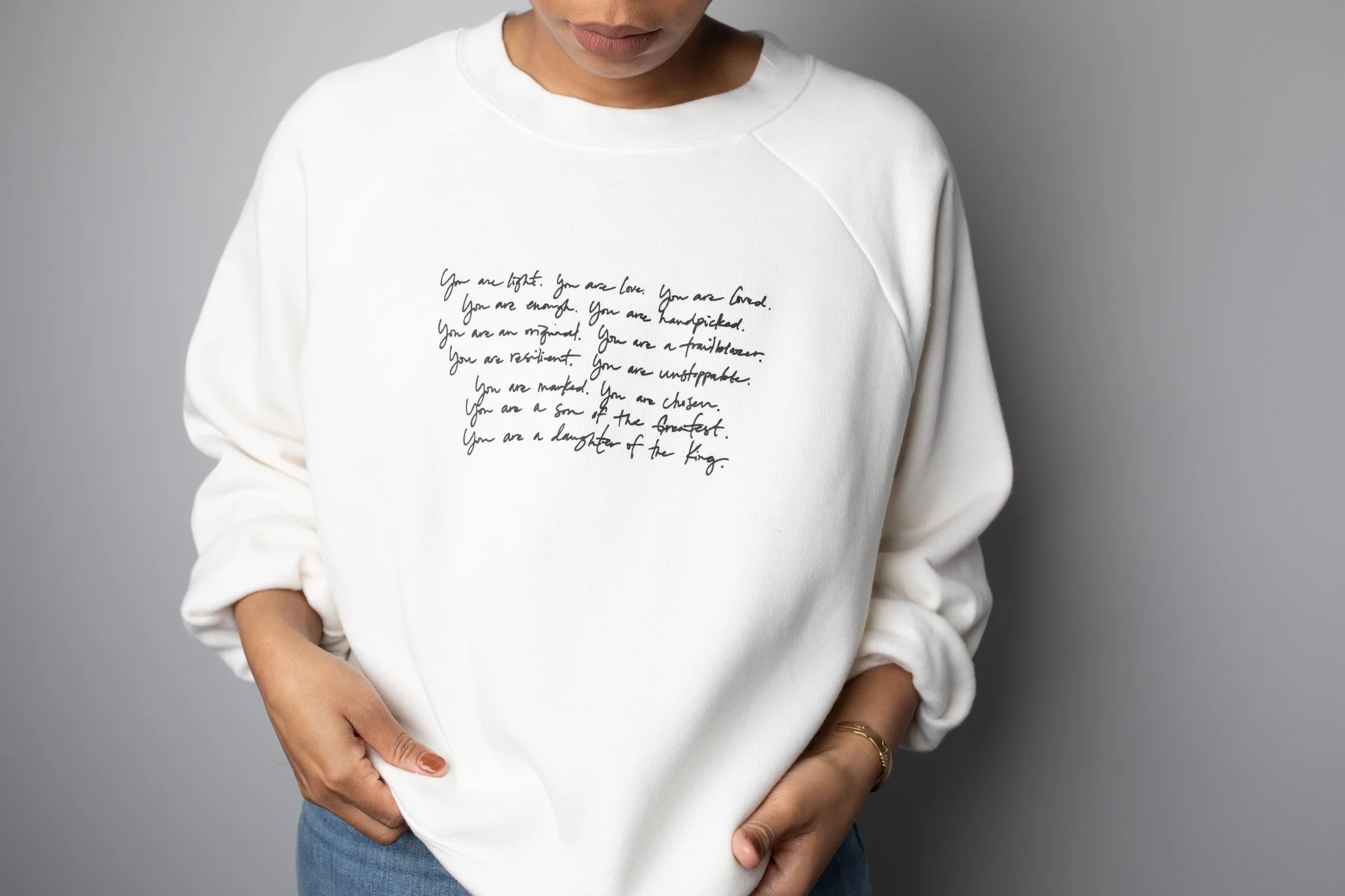 SALE Shop I Am Tee Sale Price: $10.00 Original Price: $24.00 Sale View Options I Am Sweatshirt Sale Price: $15.00 Original Price: $36.00 Sale View Options Made Perfect Sweatshirt Sale Price: $15.00 Original Price: $36.00 Sale View Options Rooting For You Sweatshirt Sale Price: $15.00 Original Price: $36.00 Sale 2 5 10/12 14/16 Purchase Added! Remember Your Why Tee Sale Price: $15.00 Original Price: $30.00 Sale small medium large xl 2xl Purchase Added! We All Have A Story Sweatshirt Sale Price: $35.00 Original Price: $50.00 Sale large xl Purchase Added! Remember Your Why Sweatshirt Sale Price: $35.00 Original Price: $50.00 Sale View Options All Times We Learn Sweatshirt Sale Price: $35.00 Original Price: $50.00 Sale View Options And Still She Rises Sweatshirt Sale Price: $35.00 Original Price: $50.00 Sale View Options My Story Is Still Being Written Sweatshirt Sale Price: $35.00 Original Price: $50.00 Sale small large xl Purchase Added! Light + Love Cropped Sweatshirt Sale Price: $35.00 Original Price: $50.00 Sold Out small medium large xl 2xl Sold Out Added! Purposed Sweatshirt Sale Price: $35.00 Original Price: $50.00 Sale View Options She Walks With God Sweatshirt Sale Price: $35.00 Original Price: $50.00 Sale xs small medium large xl 2xl Purchase Added! You Are Enough Cropped Sweatshirt Sale Price: $35.00 Original Price: $50.00 Sale small medium large xl 2xl Purchase Added!